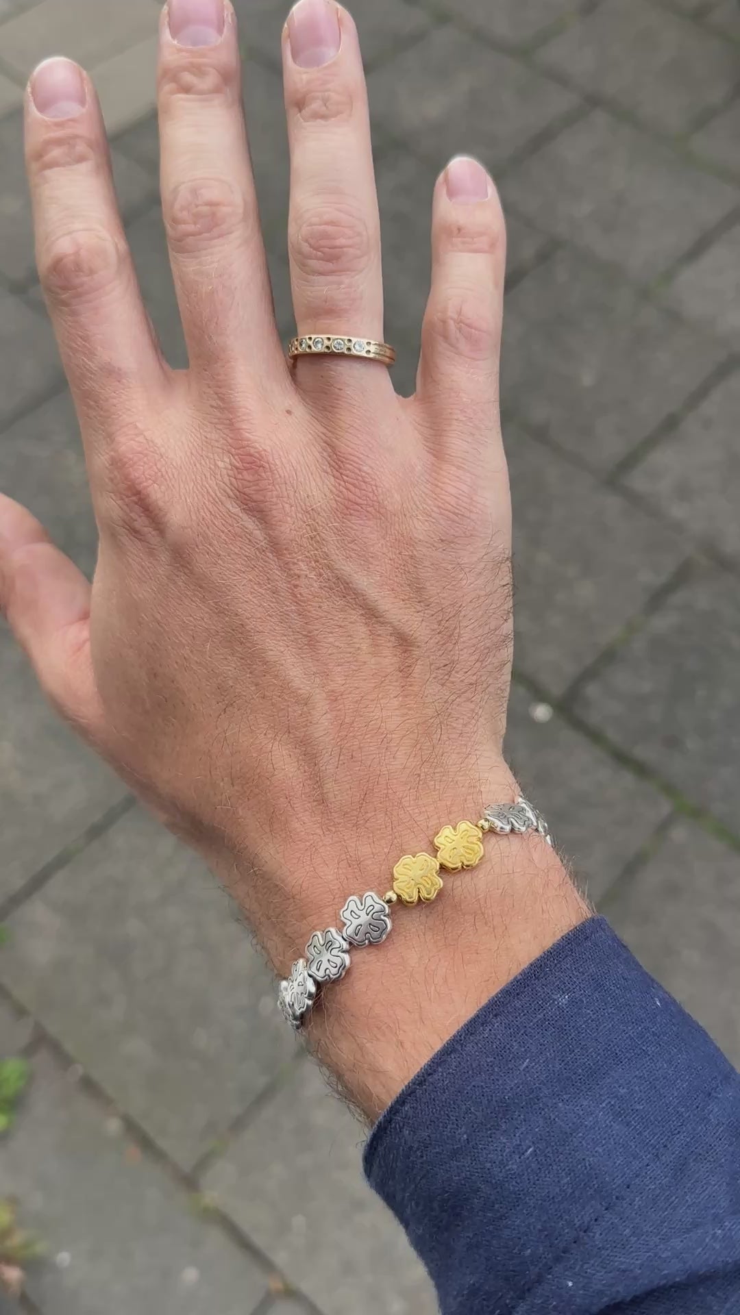 Edition No. 3, features an elastic beaded bracelet with 999 silver coated beads in our signature clover shape and two highlight 24K gold plated clover beads. Completed with a branded charm in 999 silver plating; the stretch of the elastic allows for some leeway in sizing depending on the desired fit.
